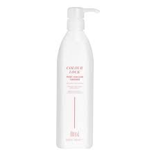 Once the color has been emulsified and rinsed thoroughly with tepid water, apply ColourLock to cleanse and condition the hair, close cuticle, and neutralize residual H2O2.