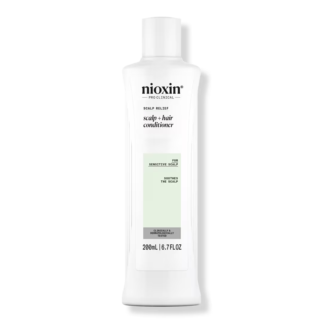 Nioxin SCALP RELIEF scalp + hair conditioner is specially designed to soothe sensitive scalps, providing relief from itchiness and reducing dandruff. This conditioner also helps thicken hair. It is formulated with nourishing ingredients including niacinamide, aloe vera, and Vitamin E to help soothe the scalp.